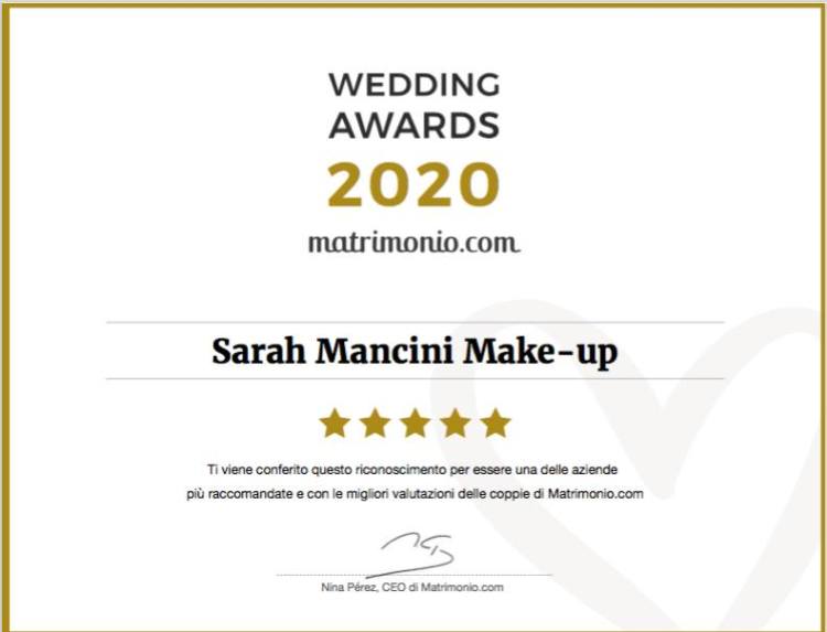 In un anno difficile per i matrimoni, Sarah Mancini Make- up ottiene un Wedding Award di Matrimonio.com, il premio più prestigioso del settore