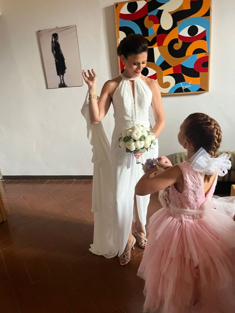 Bellissima eh, nulla da dire. Così bella da rubare (almeno per un attimo) la scena alla sposa! Appoggiata lì, sul tavolo dietro di lei, attirava l’attenzione di chiunque varcasse la porta: